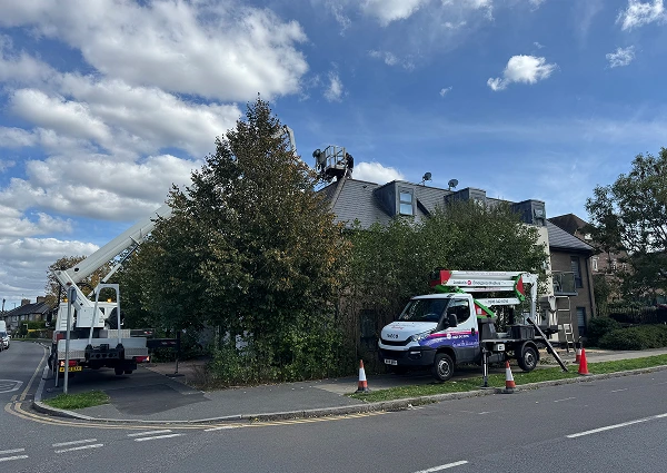 Our in-house cherry pickers provide immediate, controlled access to high-rise blocks, complex façades, and tight spaces around courtyards or rear elevations.